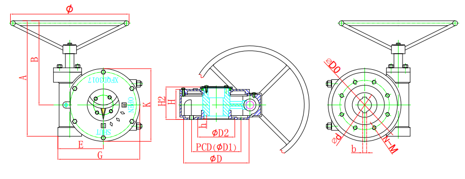 該系列蝸輪箱適用環(huán)境廣、功能全面、形式多樣(有手輪式、手輪帶鎖式等),產(chǎn)品共有11種型號。